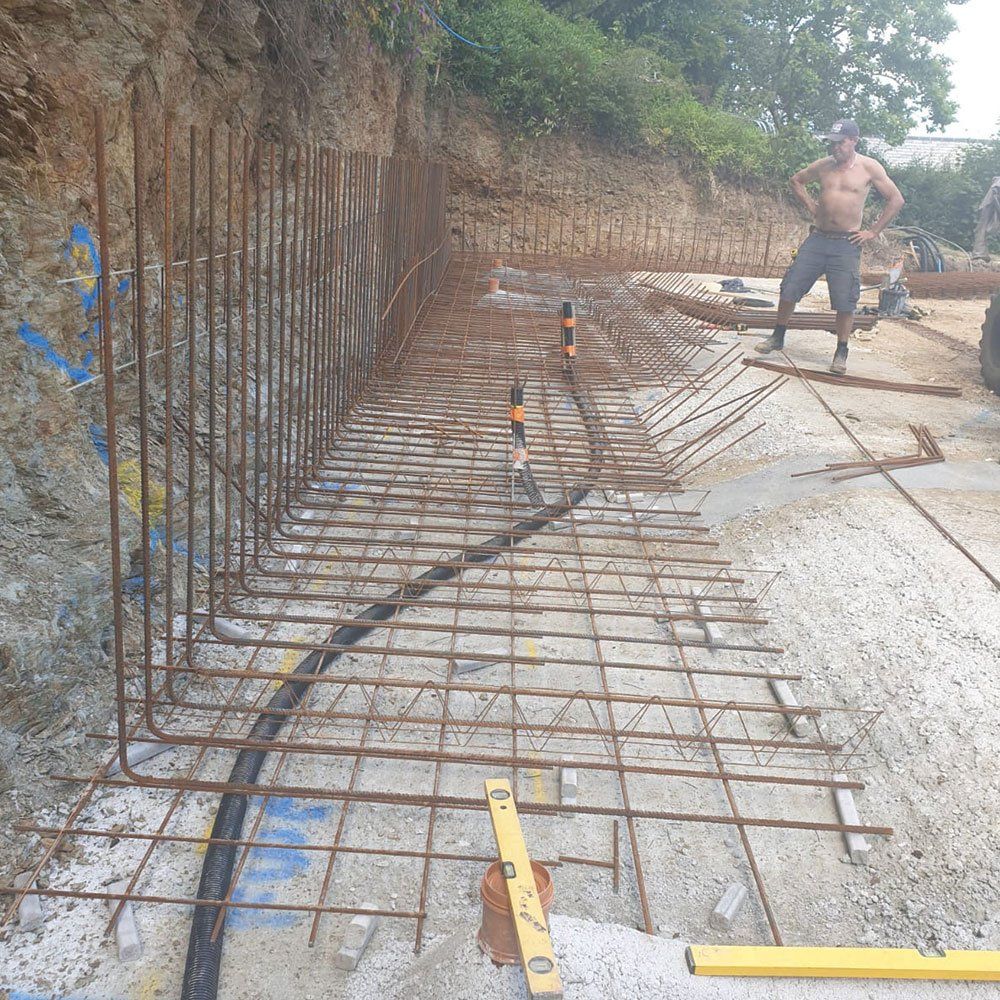 Works included demolition of existing house and removal of rubble off site. Excavation of foundations and construction of Nudura retaining wall. We completed all of the drainage works, which included three attenuation tanks, reinforced raft foundation for the new dwelling ready for the main contractor to build the house.
